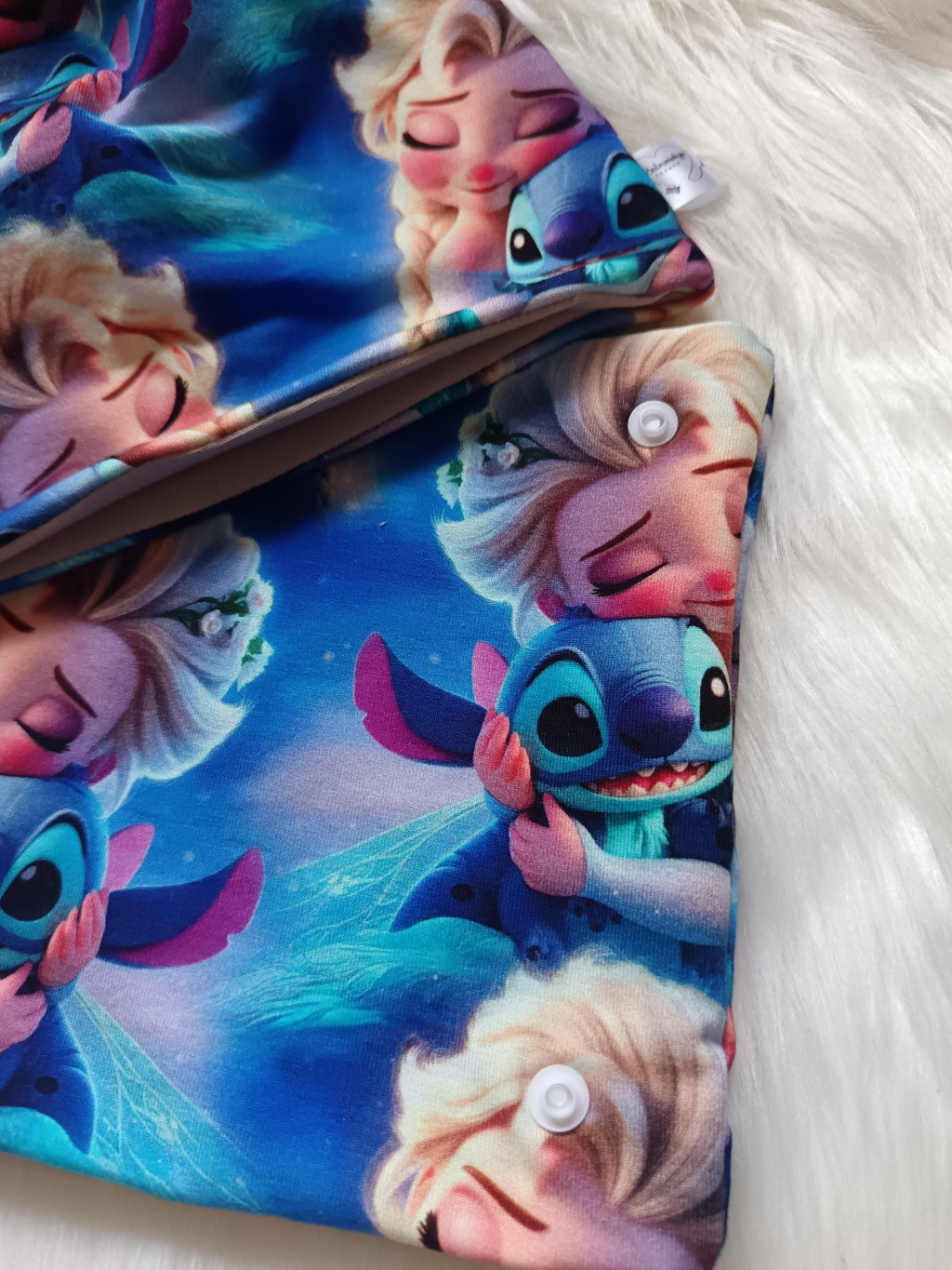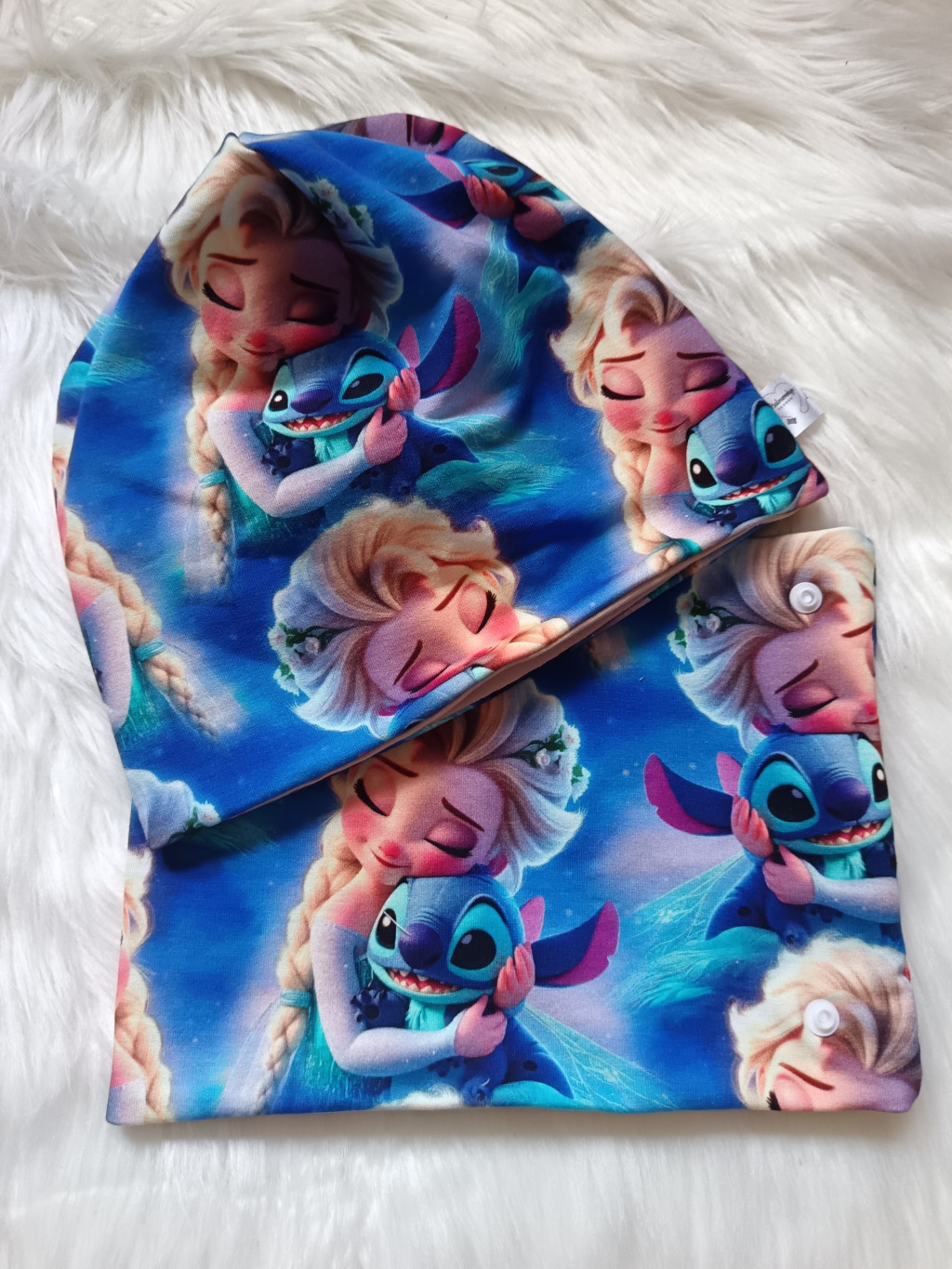Ez a kézzel készített kék Elza mintás gyerek sapka–sál szett egyszerre praktikus és stílusos darab a hűvösebb napokra. A külső réteg mintás pamut futter vagy pamut jersey anyagból készül, amely puha tapintású, rugalmas és kényelmes viseletet biztosít. A bélés pamut jersey, ami kellemesen meleg, mégis jól szellőzik, így nem irritálja az érzékeny gyerekbőrt.